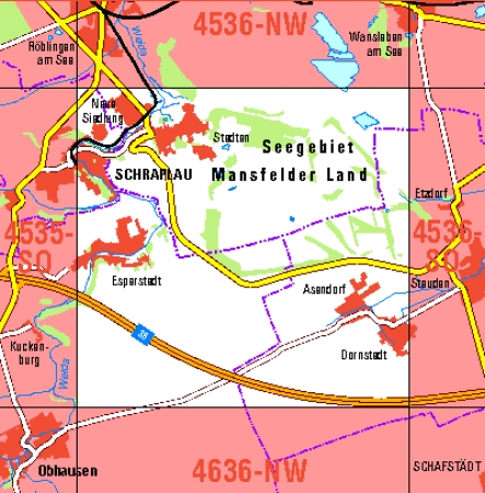 Maßstab 1:10 000, Nomenklatur: 4536-SW, Name des Kartenblatts: Schraplau, Auflagejahr: 2023, Blattschnitt: Normalblattschnitt (Preußische Landesaufnahme), Gradabteilungskarte mit 5 min geographischer Länge und 3 min geographischer Breite, Geodätischer Raumbezug: GRS80-Ellipsoid, ...