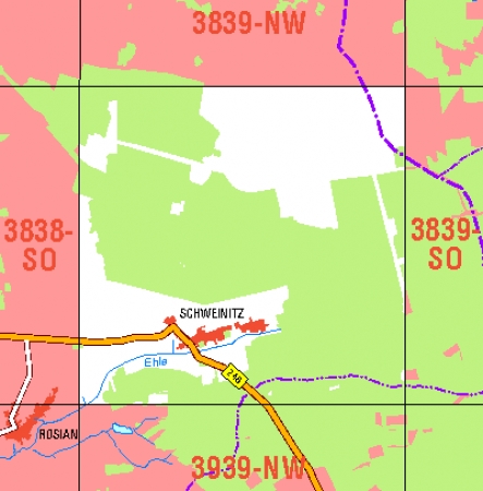 Maßstab 1:10 000, Nomenklatur: 3839-SW, Name des Kartenblatts: Schweinitz, Auflagejahr: 2021, Blattschnitt: Normalblattschnitt (Preußische Landesaufnahme), Gradabteilungskarte mit 5 min geographischer Länge und 3 min geographischer Breite, Geodätischer Raumbezug: GRS80-Ellipsoid, ...