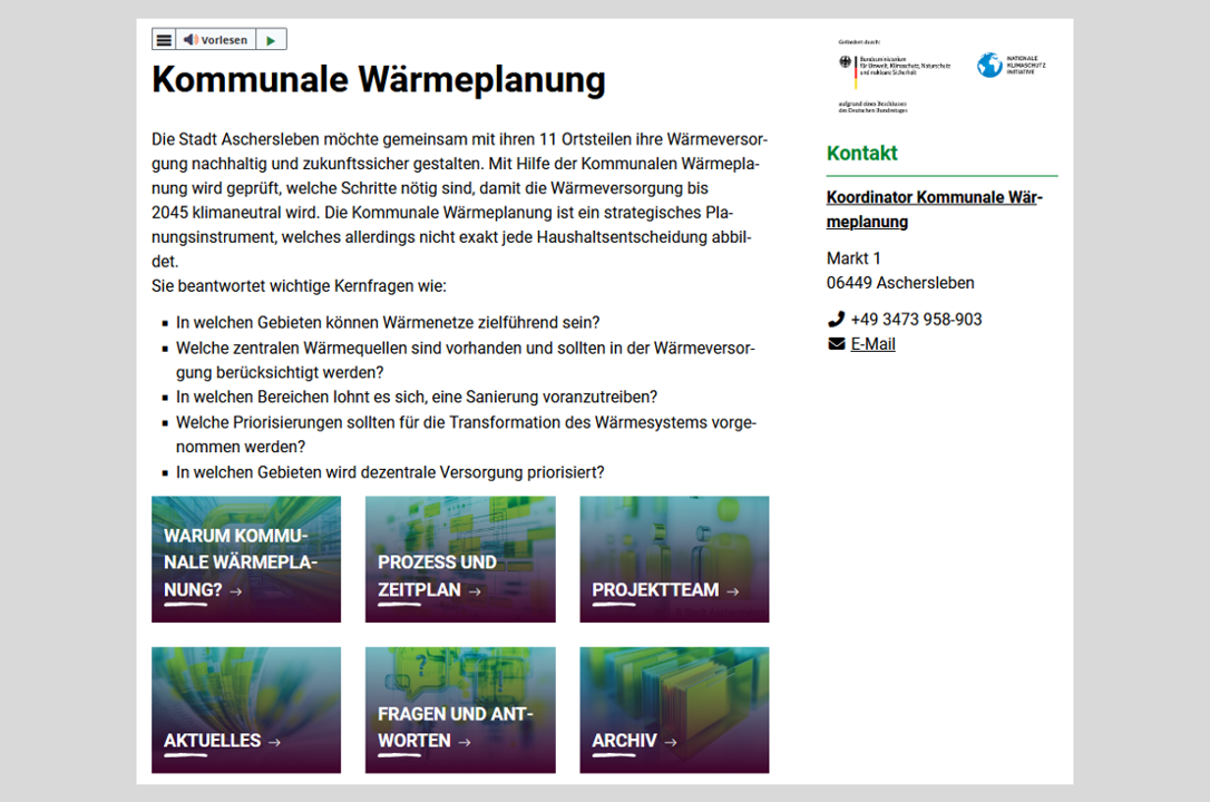 (F. Eley, Koordinator für kommunale Wärmeplanung, Energie, Klimaschutz & Nachhaltigkeit Stadt Aschersleben, Markt 1, 06449 Aschersleben)