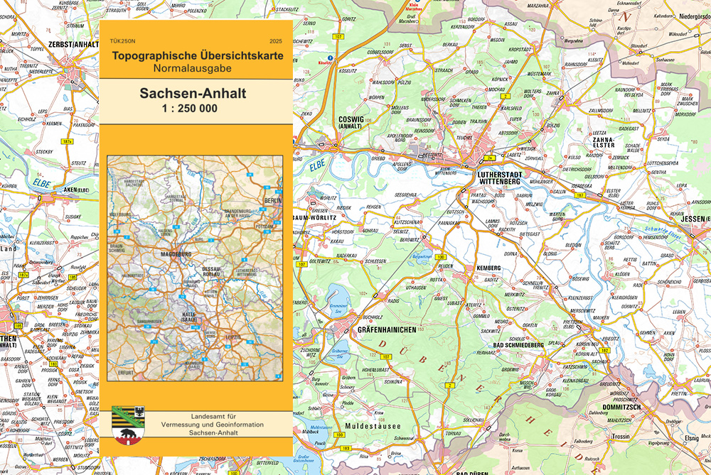 - zum kostenfreien Download und WMS (hier: Themenfeld Karten und Luftbilder/Topographische Karten/Topographische Übersichtskarte Sachsen-Anhalt (TÜK250))
