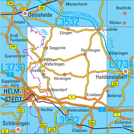 Maßstab 1:50 000, Nomenklatur: L3732, Name des Kartenblatts: Helmstedt, Auflagejahr: 2024, Blattschnitt: Normalblattschnitt (Preußische Landesaufnahme), Gradabteilungskarte mit 20 min geographischer Länge und 12 min geographischer Breite, Geodätischer Raumbezug: GRS80-Ellipsoid, ...