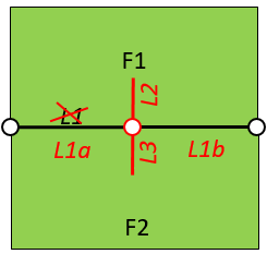 F1 und F2 bleiben bestehen. Aus L1 entsteht L1a und L1b. |